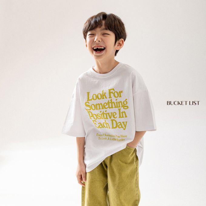 韓國 BUCKET LIST - 美式文字印刷短袖落肩上衣-白