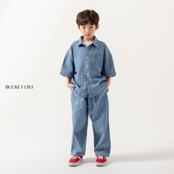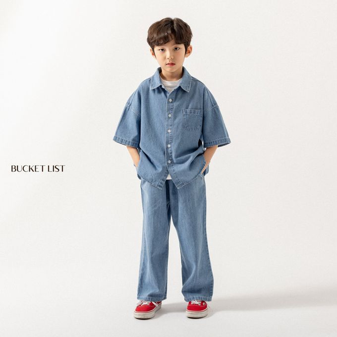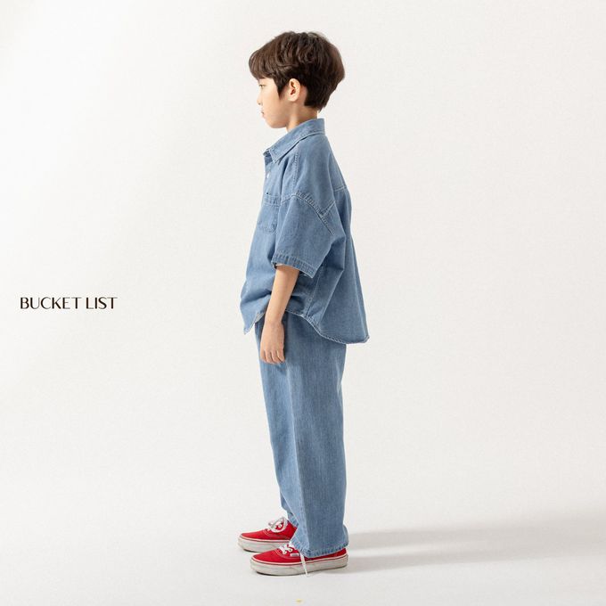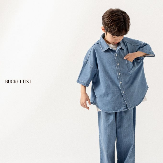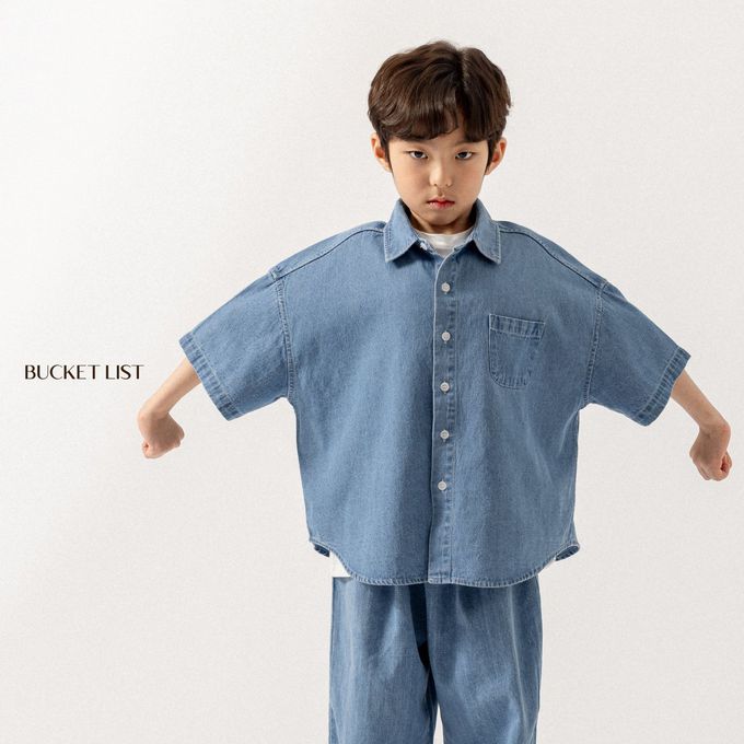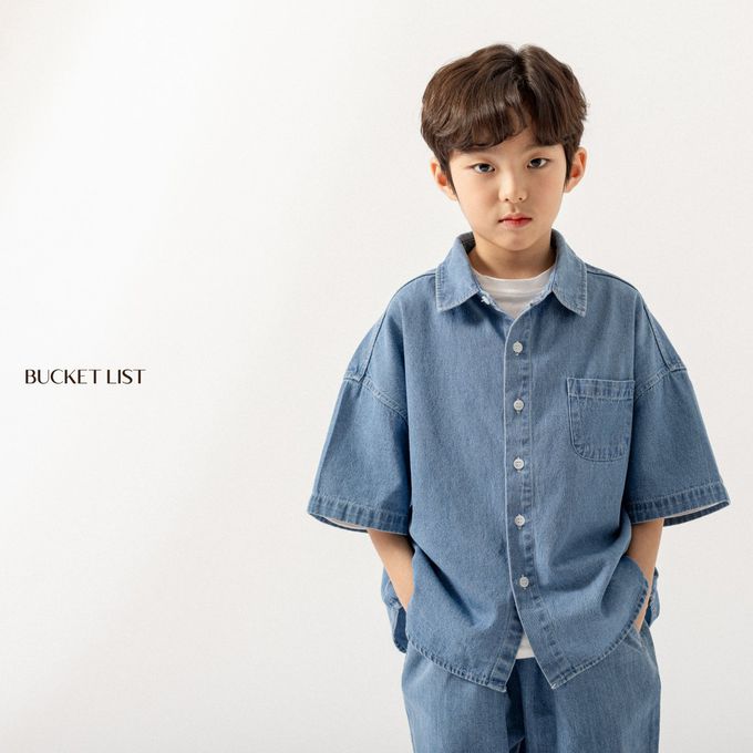 韓國 BUCKET LIST - 工裝風格短袖牛仔襯衫/外套