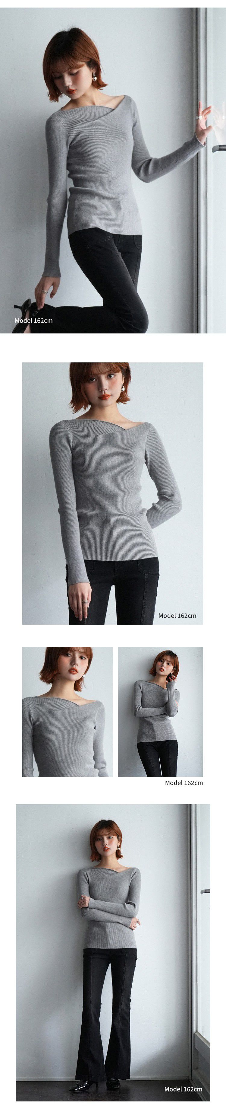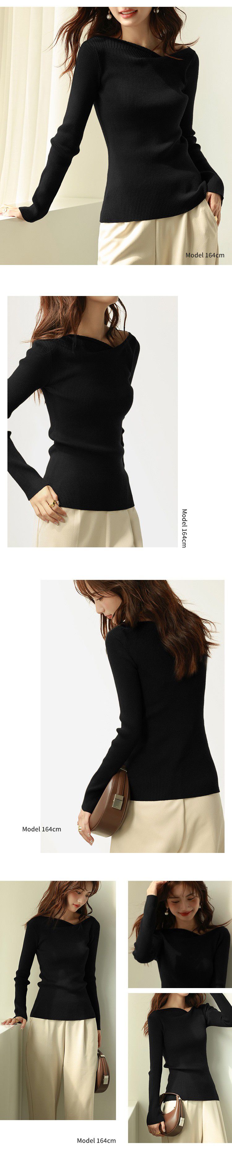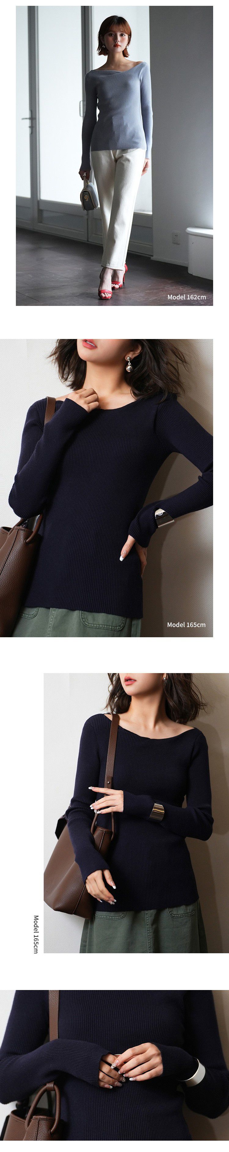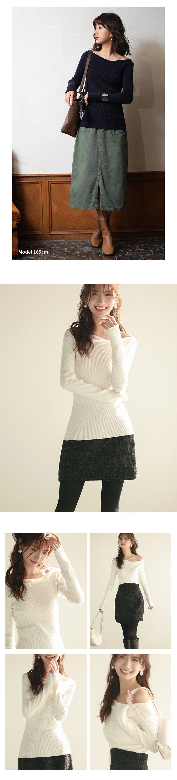 日本女裝代購 - 不規則優雅船領彈性針織上衣-橄欖綠