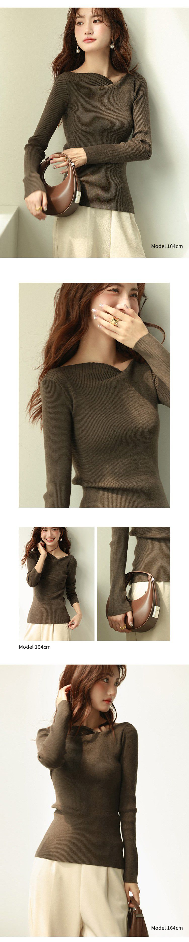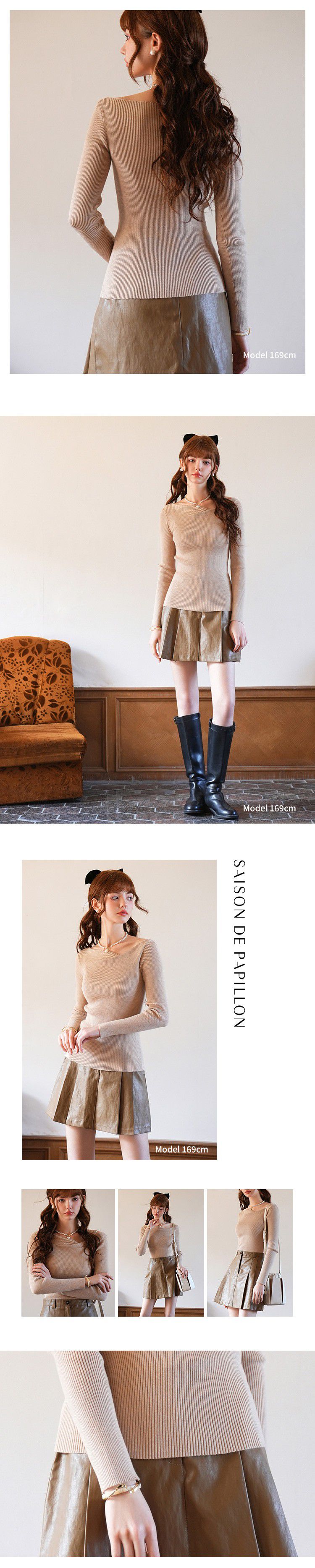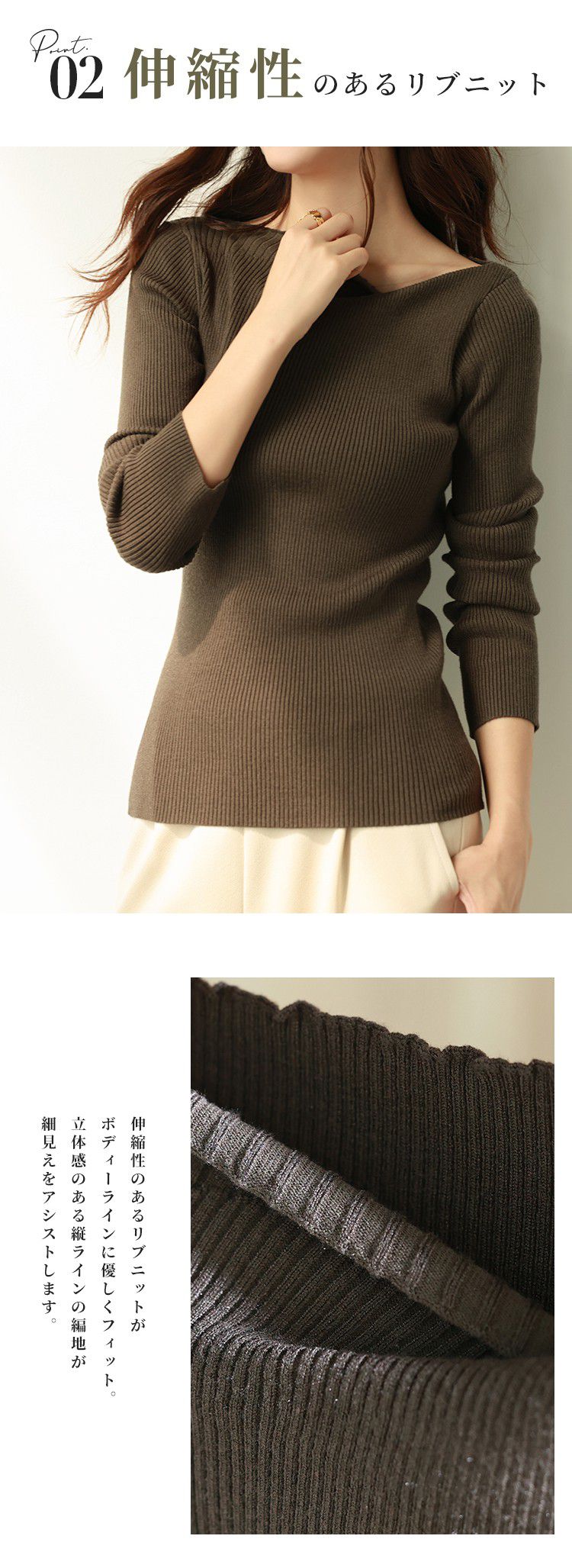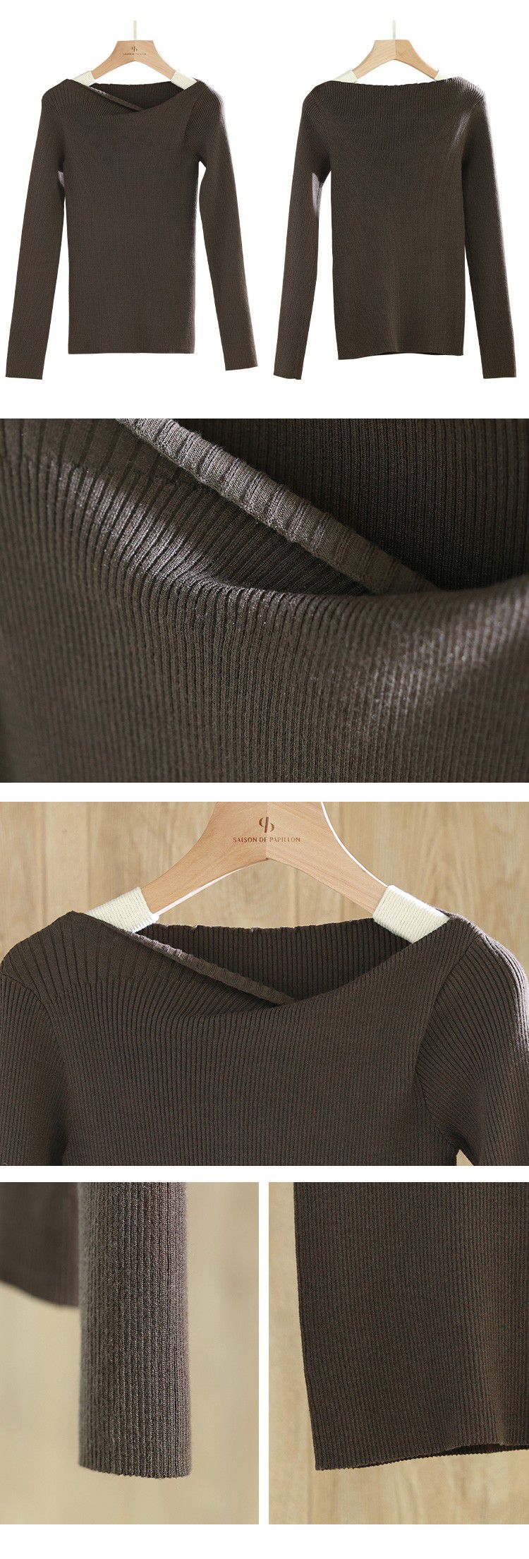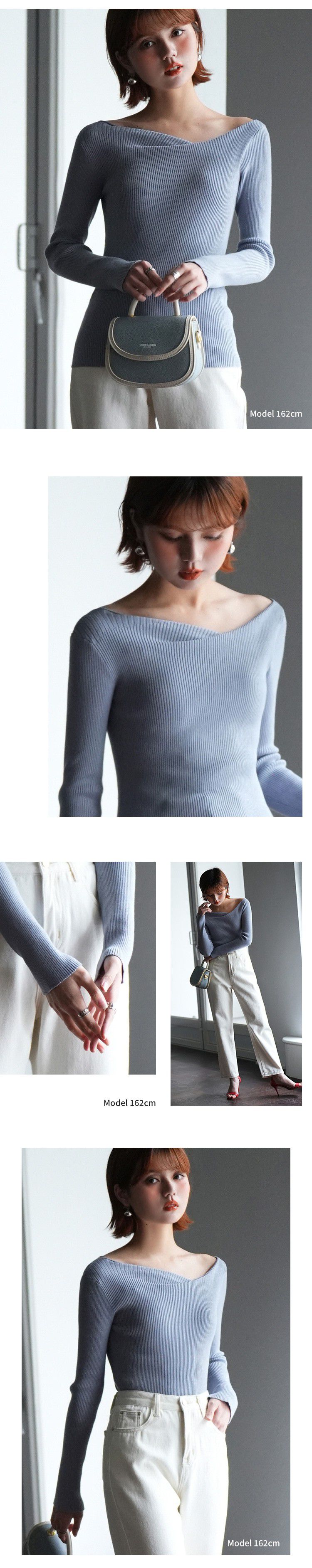 日本女裝代購 - 不規則優雅船領彈性針織上衣-橄欖綠