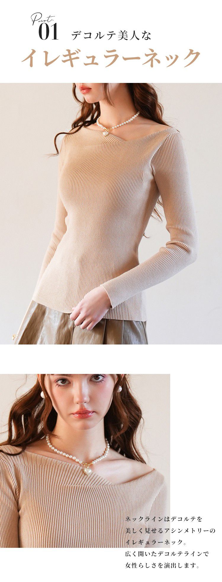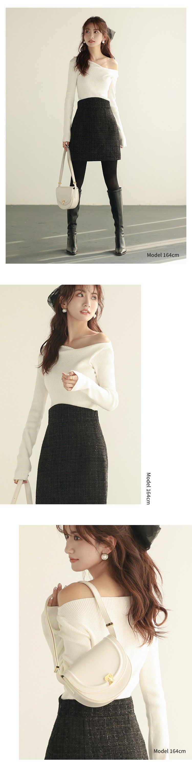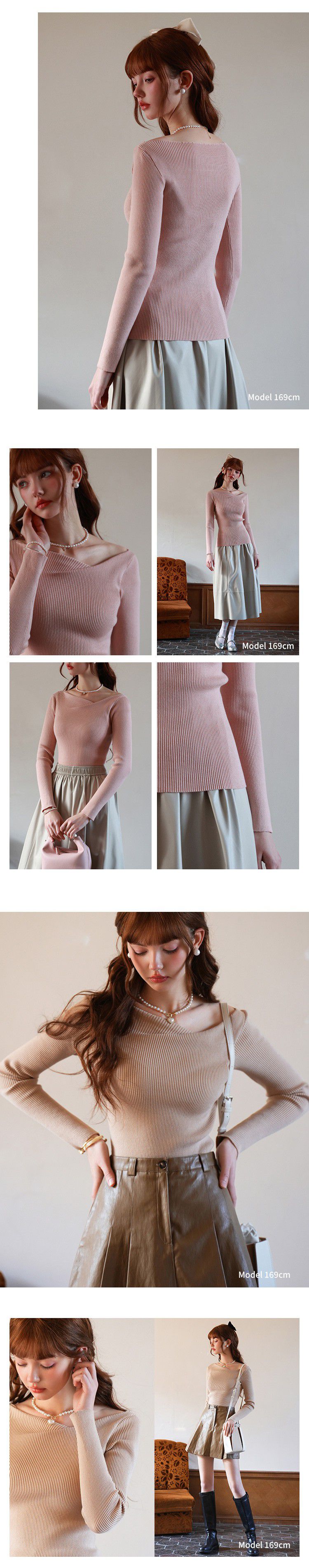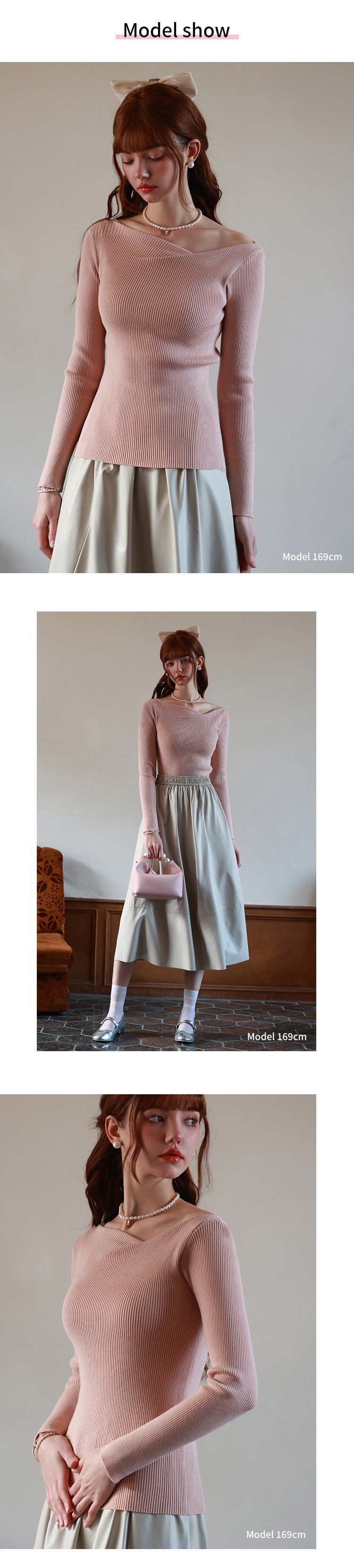 日本女裝代購 - 不規則優雅船領彈性針織上衣-橄欖綠