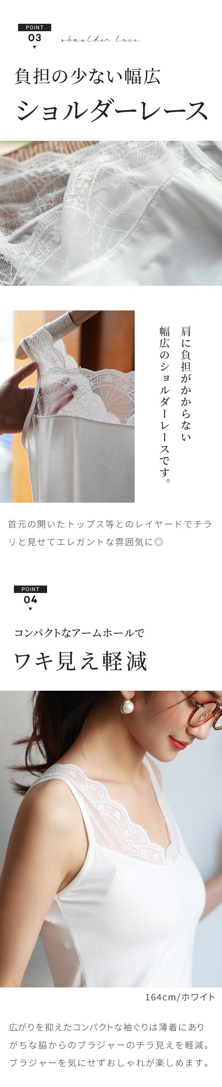 日本女裝代購 - [推薦]前後2way蕾絲吸濕速乾內搭背心-白 (F)