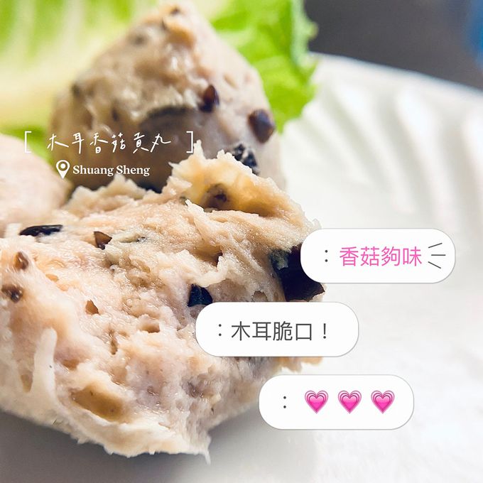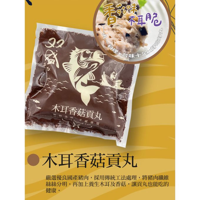 成分:豬肉(台灣)、木耳、香菇、糖、鹽、醋、蔥酥(蔥頭、小麥麩皮、棕櫚油、玉米澱粉、樹薯粉)、磷酸二澱粉、調味劑(L-麩酸鈉)、結著劑(焦磷酸鈉(無水)、多磷酸鈉、磷酸二氫鈉(無水))、複方甜味劑(醋磺內酯鉀、二氧化矽)、香料