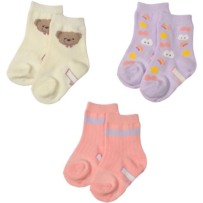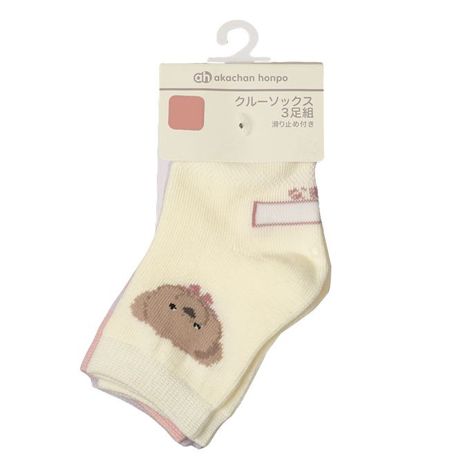 akachan honpo - 中長襪3雙組-兔子 小貓-米白色 (9~14cm)