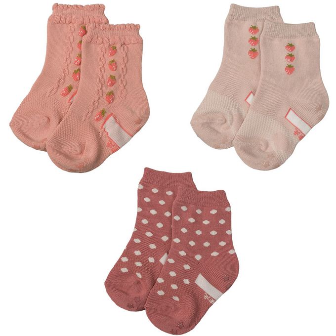 akachan honpo - 中長襪3雙組-草莓-粉紅色 (9~14cm)