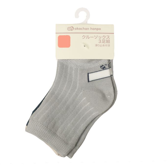 akachan honpo - 中長襪3雙組 羅紋-素面-灰色 (9~14cm)