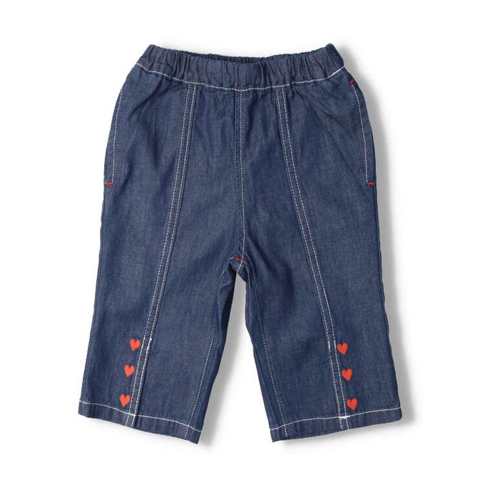 akachan honpo - 刺繡6分牛仔褲-藍色