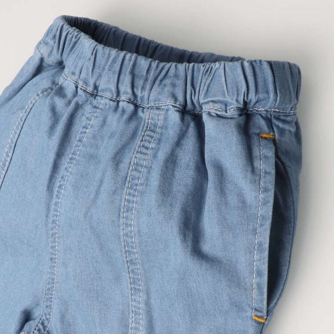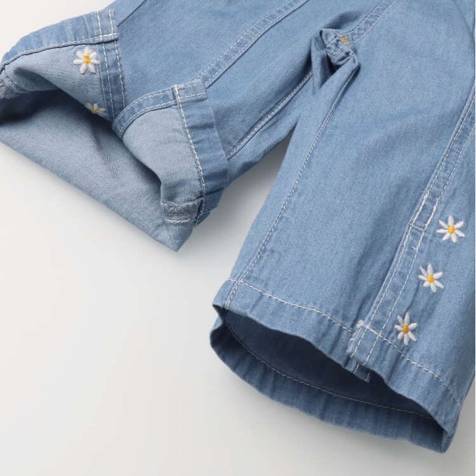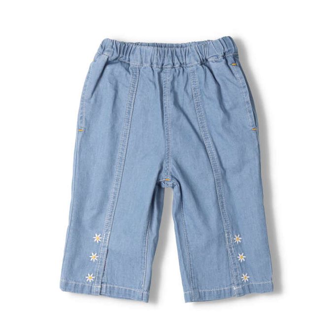 akachan honpo - 刺繡6分牛仔褲-藍色