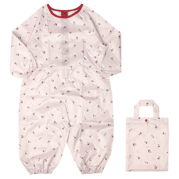 akachan honpo - 長袖連身防髒衣-櫻桃-粉紅色