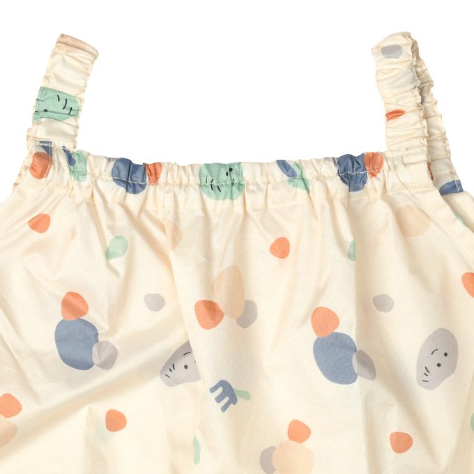 活潑好動的小朋友玩沙時,總是難免被沙子弄髒。這款無袖連身防髒衣可以保護衣物,又可讓小朋友開心地玩耍。