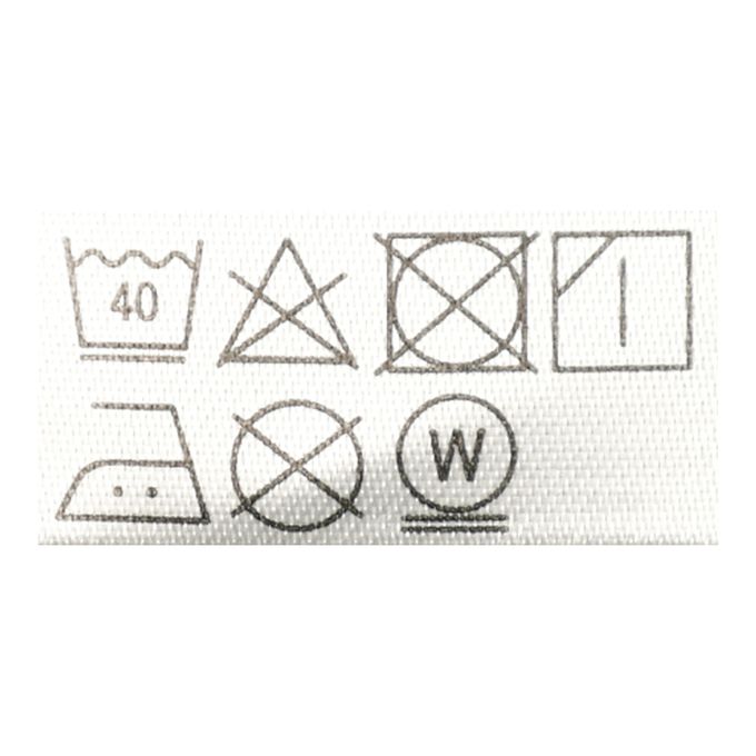 • 注意事項:●標示內容遵照台灣法規之規定。●請使用不含螢光增白劑的洗劑。●請勿熨燙印花部分。