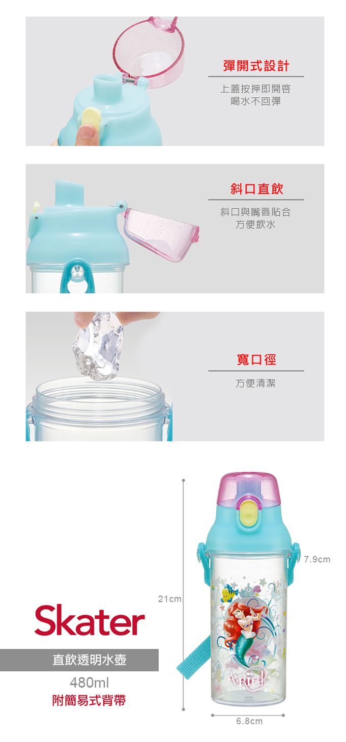 日本 SKATER - (兒童)直飲式透明水壺-迪士尼公主My Day-480ml