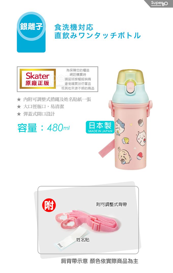 日本 SKATER - (兒童)銀離子直飲式水壺-酷洛米-480ml