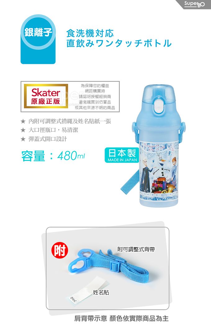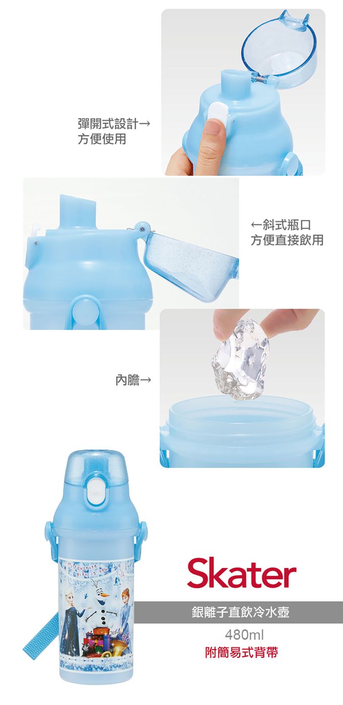 日本 SKATER - (兒童)銀離子直飲式水壺-冰雪奇緣Heart-480ml