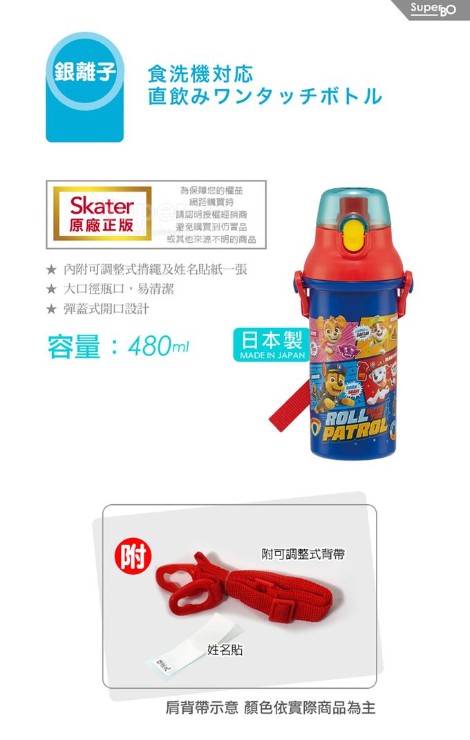 日本 SKATER - (兒童)銀離子直飲式水壺-汪汪隊-480ml