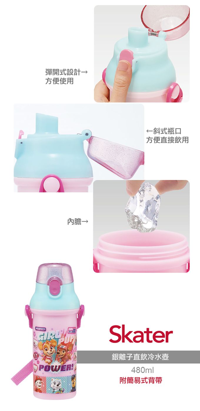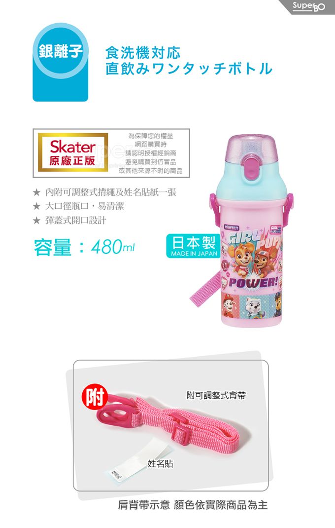 日本 SKATER - (兒童)銀離子直飲式水壺-汪汪隊-480ml