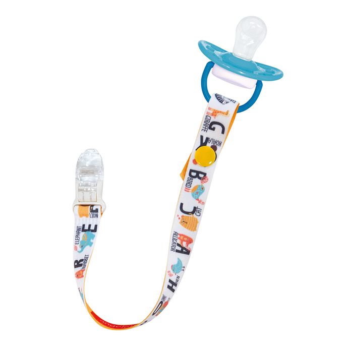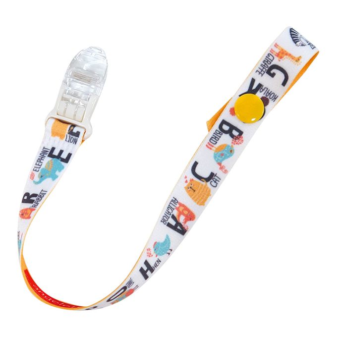 使用方式:●夾子依圖片中箭頭的方向往上或往下彎折即可打開,調回水平狀即可關閉。●將帶子穿過奶嘴等物品後扣上釦子固定住。※無法使用於無掛環的奶嘴。●有髒汙時請用溫水輕柔地用手清洗。