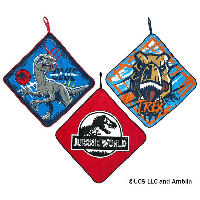 擦手巾3件組-侏儸紀公園 驚悚世界 (28×28cm)