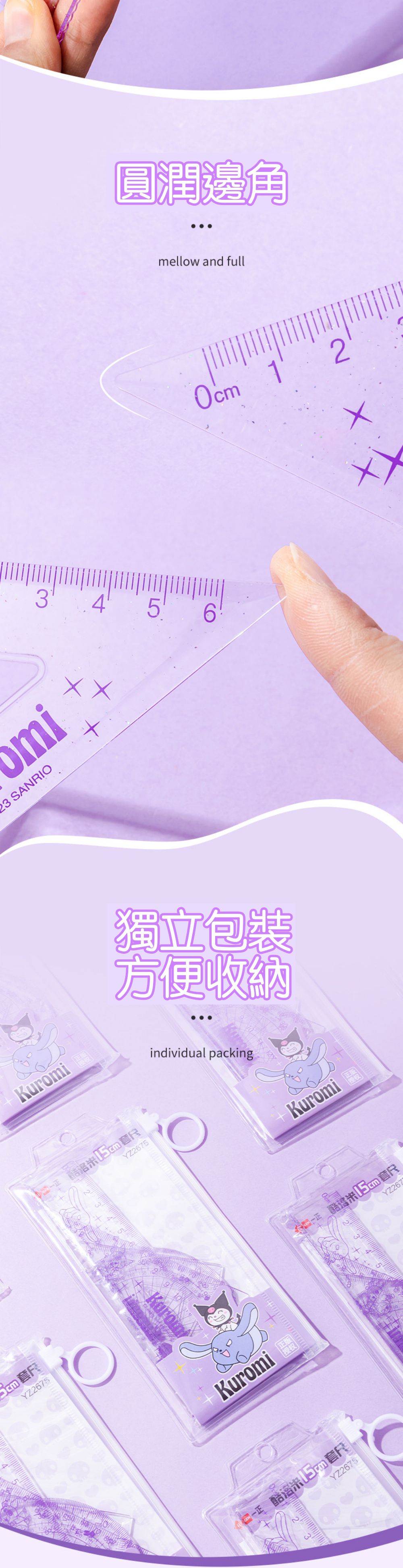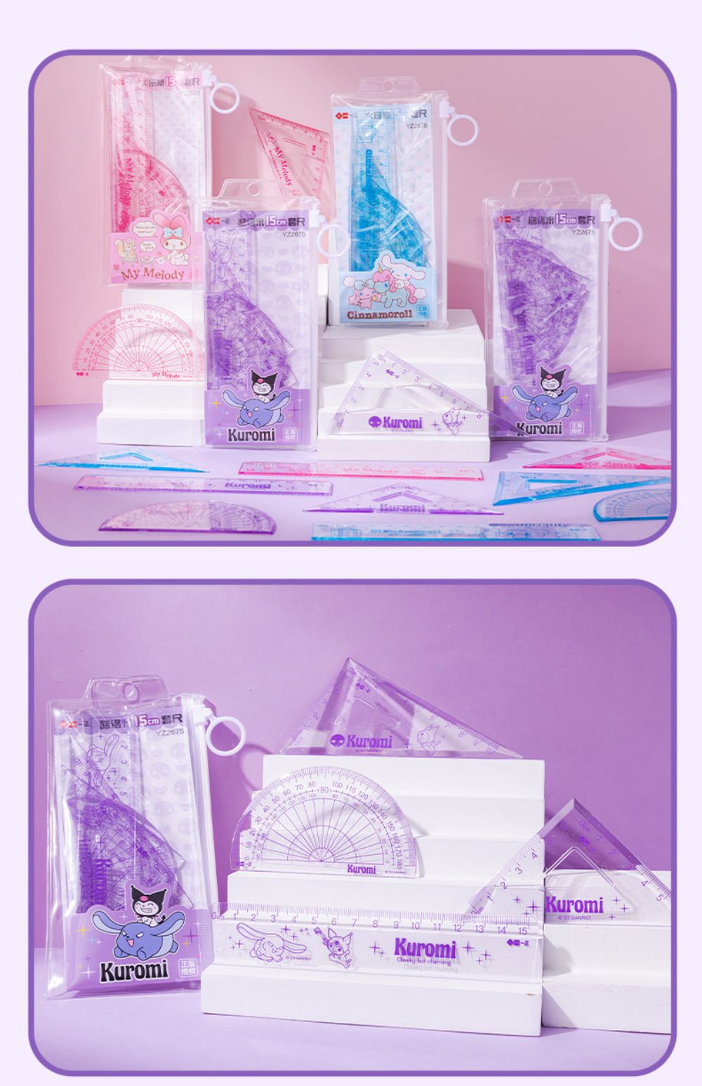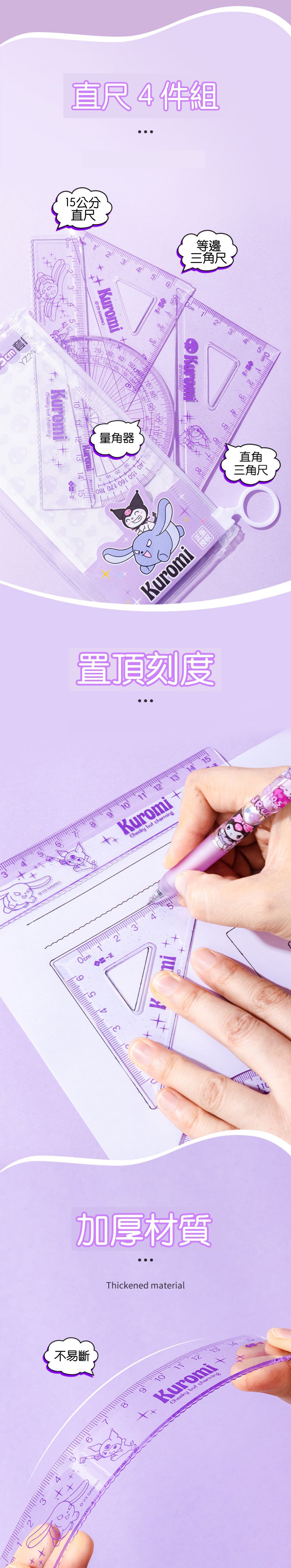 卡通15cm尺+三角板套組(4入)-卡通人物庫洛米-紫色