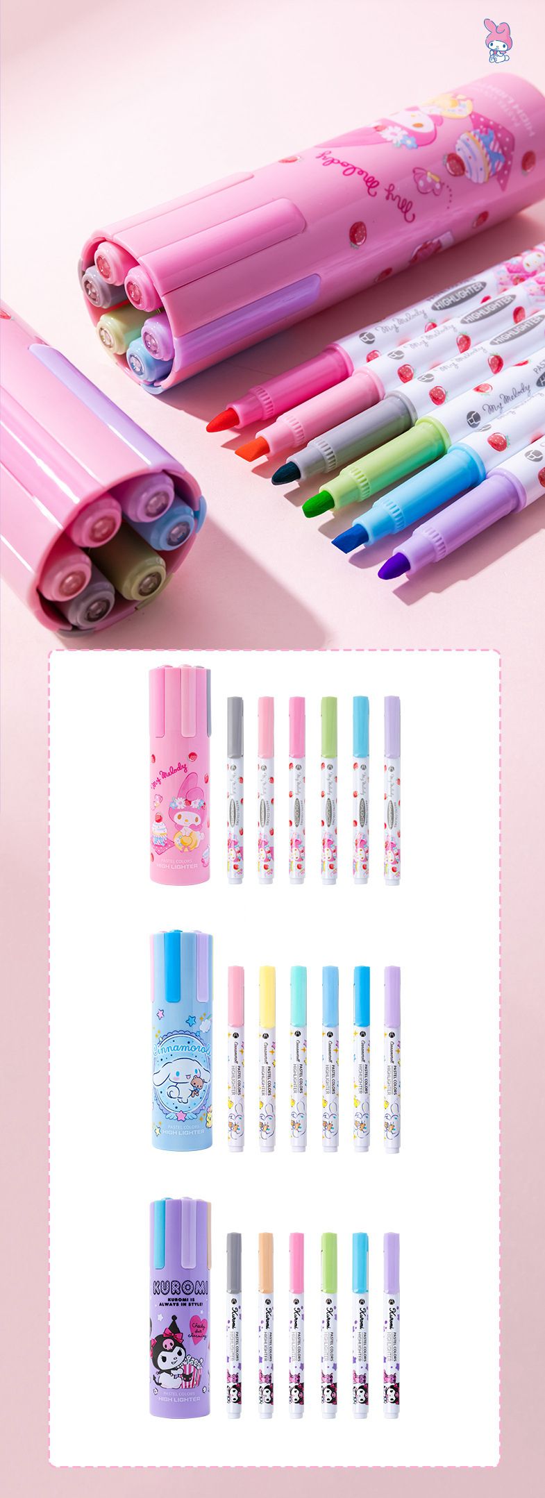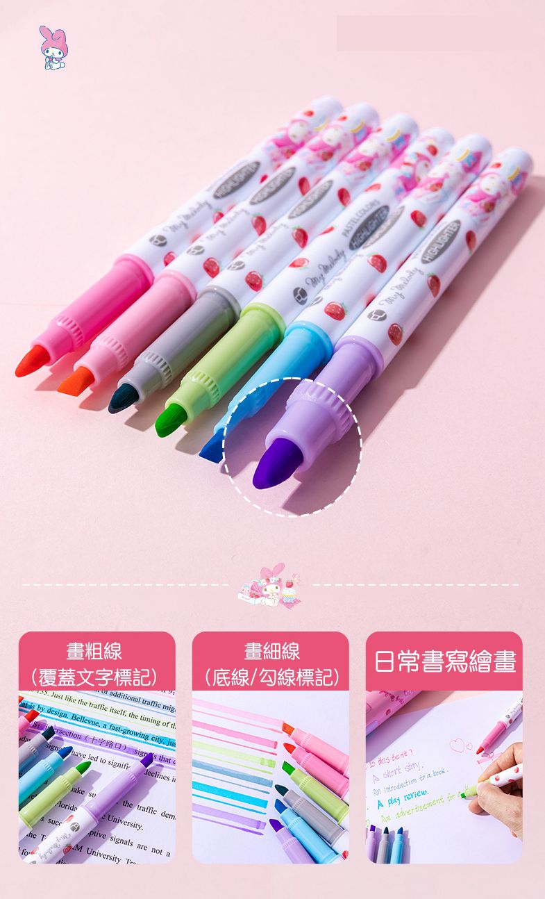 卡通圓筒螢光筆(6入)-卡通人物庫洛米-紫色