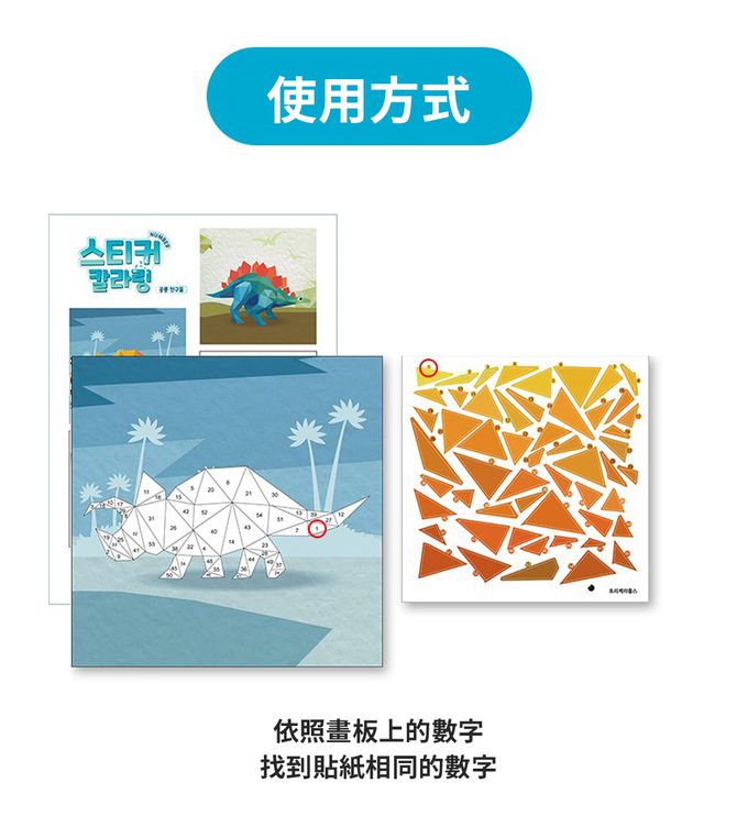 內容物:說明書*1、三角龍貼紙*1、劍龍貼紙*2、三角龍號碼畫版*1、劍龍號碼畫版*1