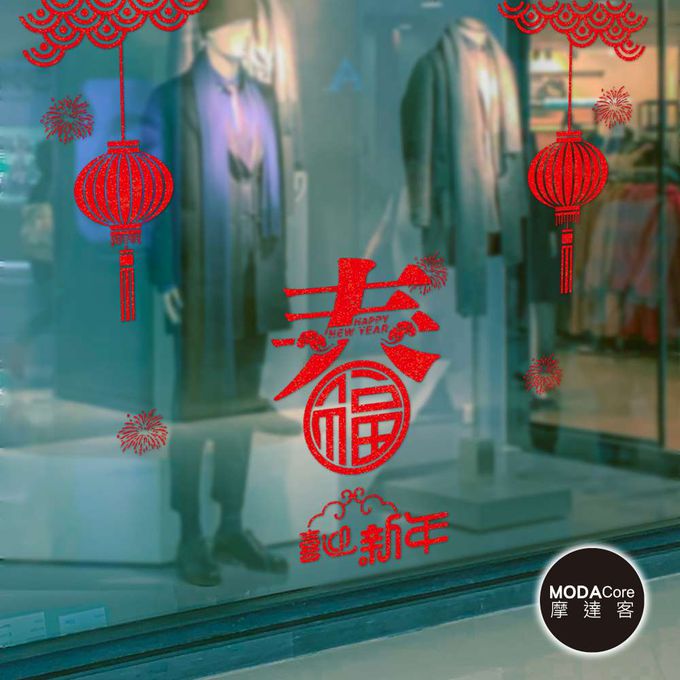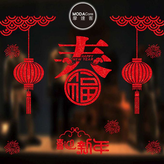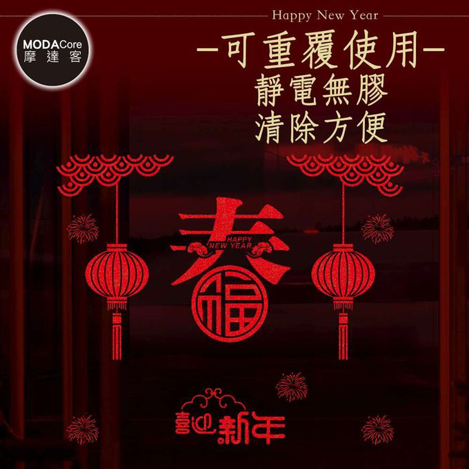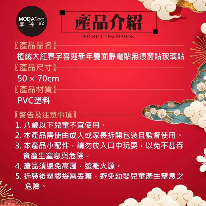 品名:摩達客◉春節開運招財◉植絨大紅春字喜迎新年雙面靜電貼無痕窗貼玻璃貼