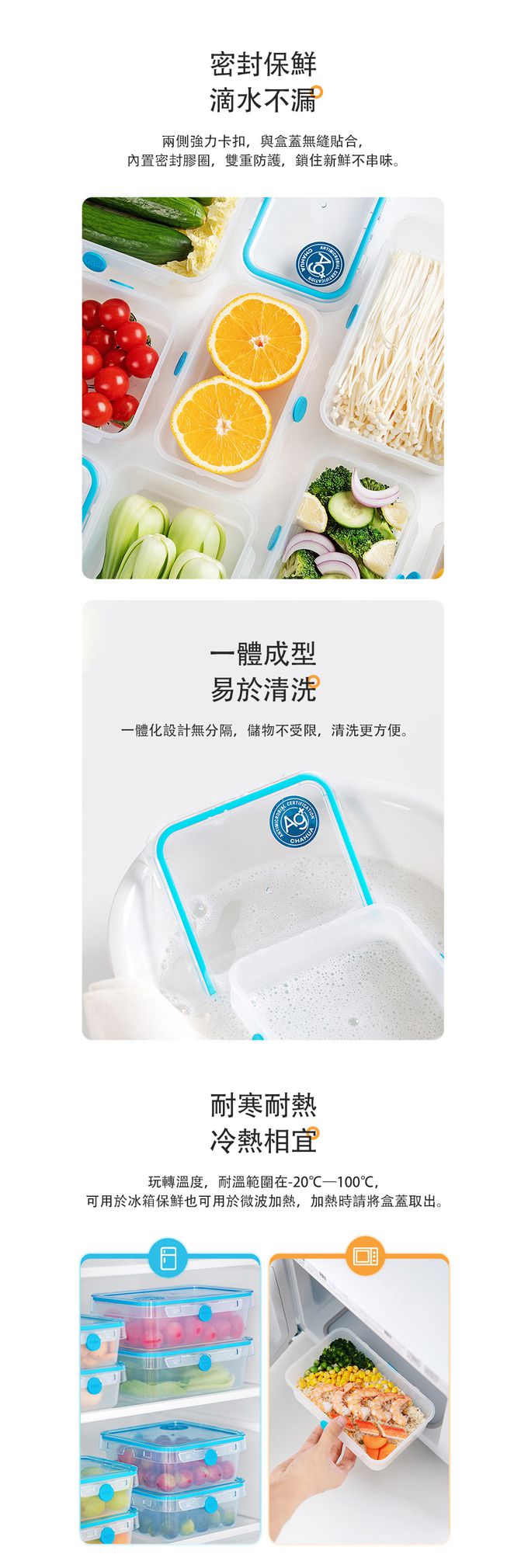 品名:Ag+銀離子抗菌長方形密封保鮮盒-1150ml-3入