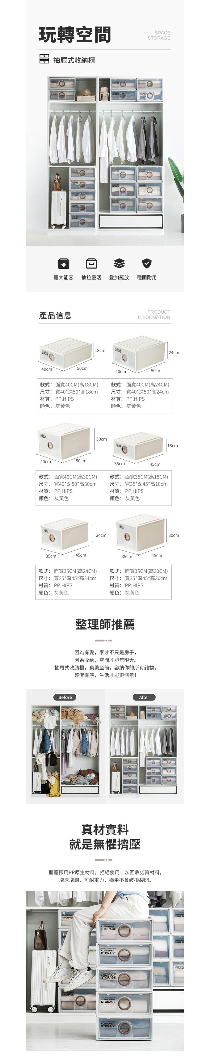 品名:40cm面寬-伯納單層抽屜收納箱(高30cm)-3入