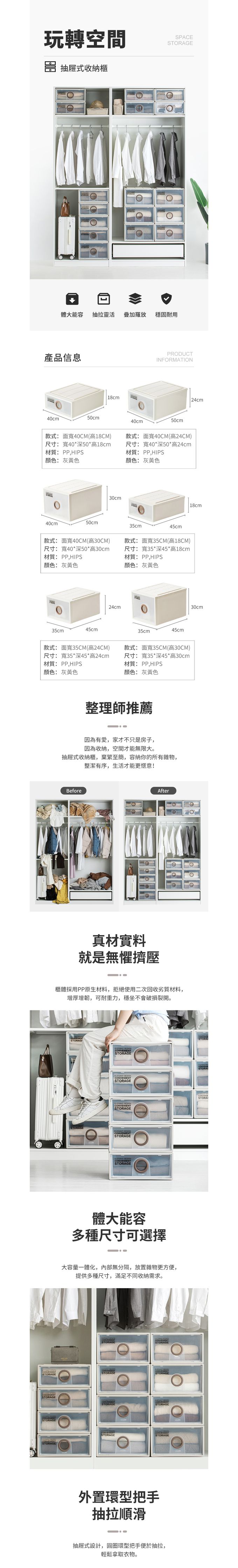 品名:35cm面寬-伯納單層抽屜收納箱(高30cm)-3入