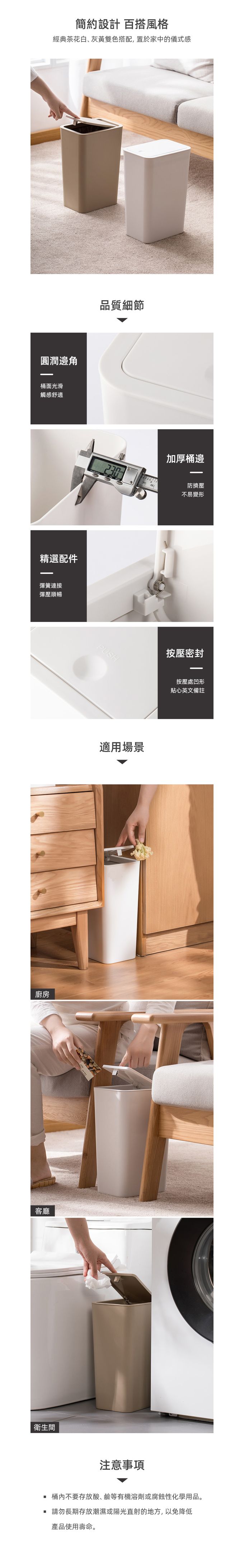 柯琳窄長型按壓彈蓋式垃圾桶-9.1L-茶花白