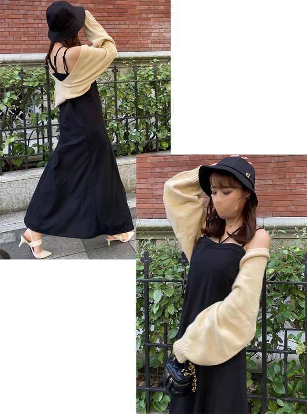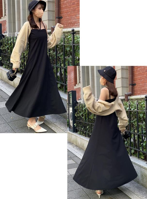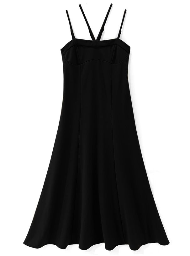 日本 GRL - 雙肩帶V領傘狀吊帶洋裝-黑