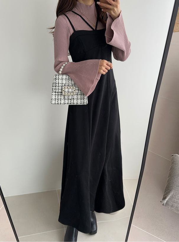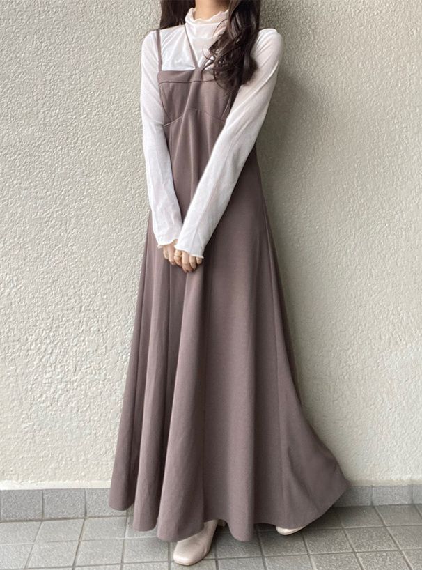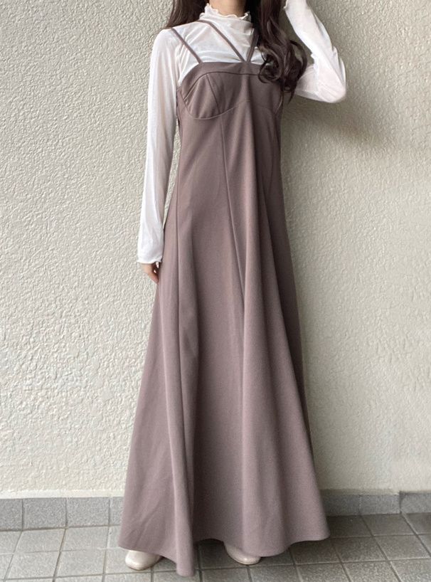 • 品名:雙肩帶V領傘狀吊帶洋裝
