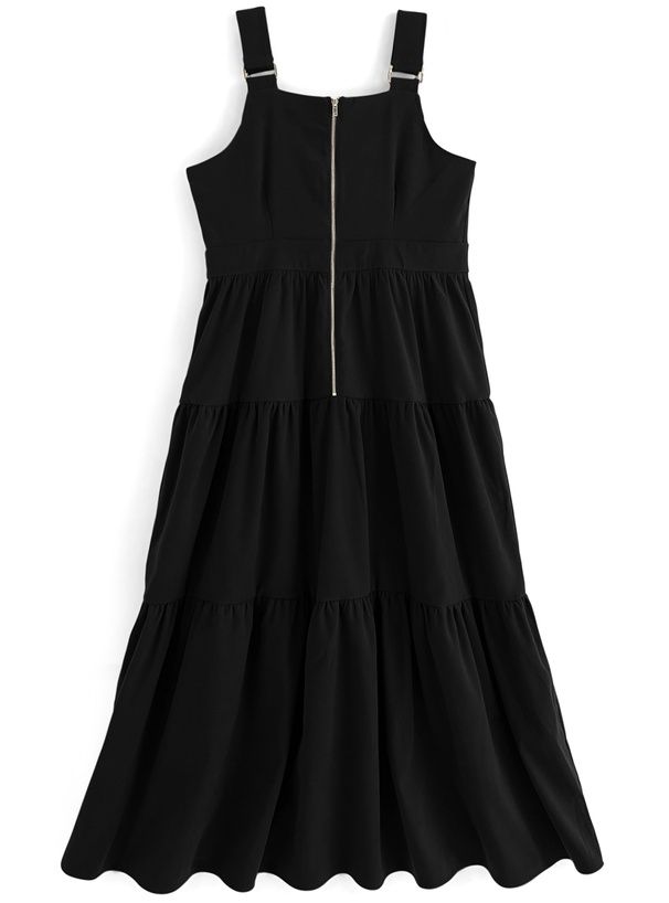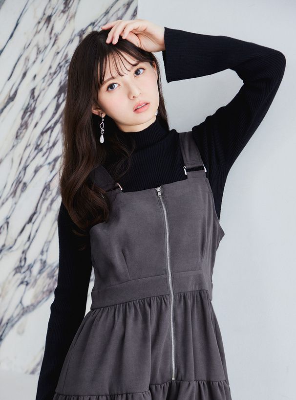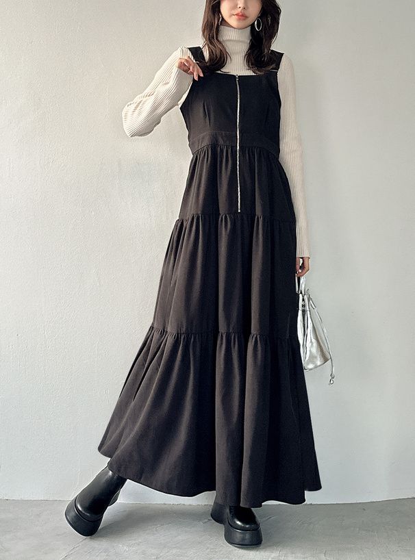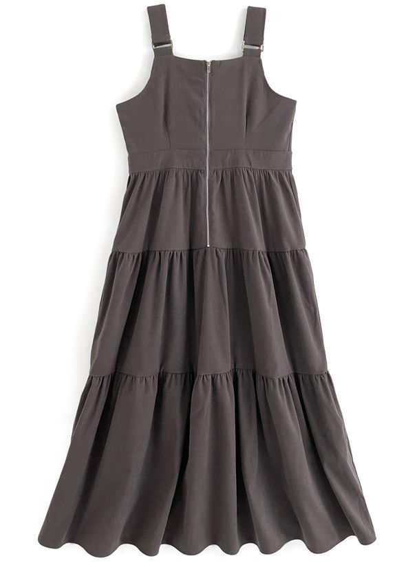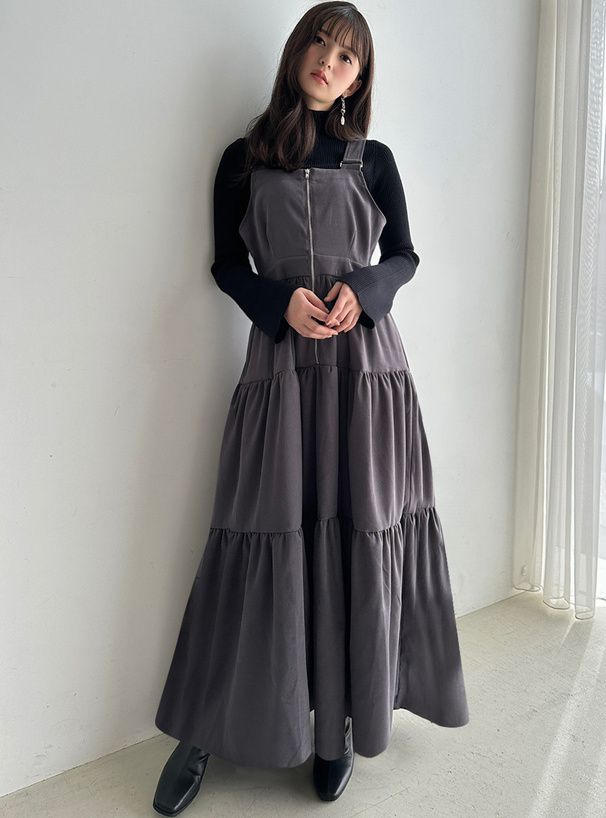 麂皮感蛋糕層次拉鍊吊帶裙
