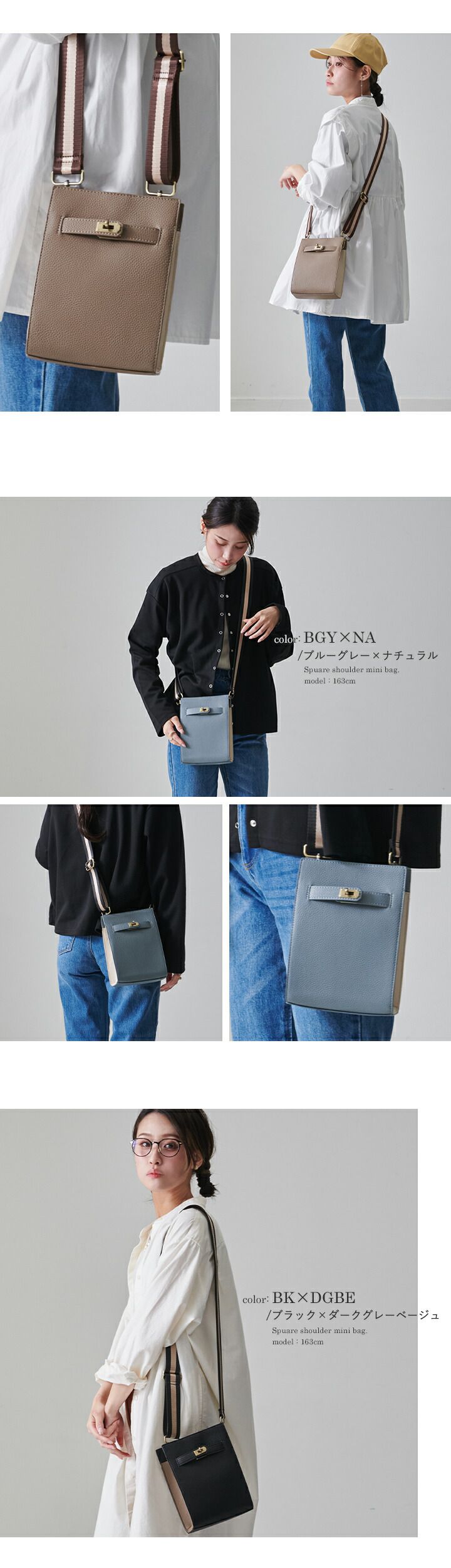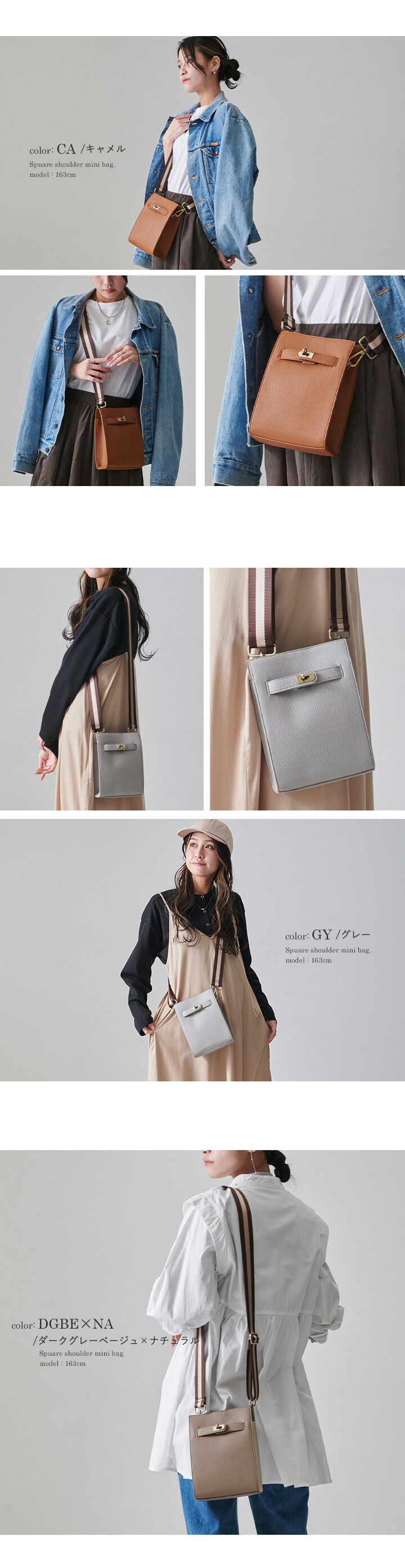 日本 LIZDAYS - 輕巧皮革迷你時尚肩背包-淺灰 (15.5x21x7cm)