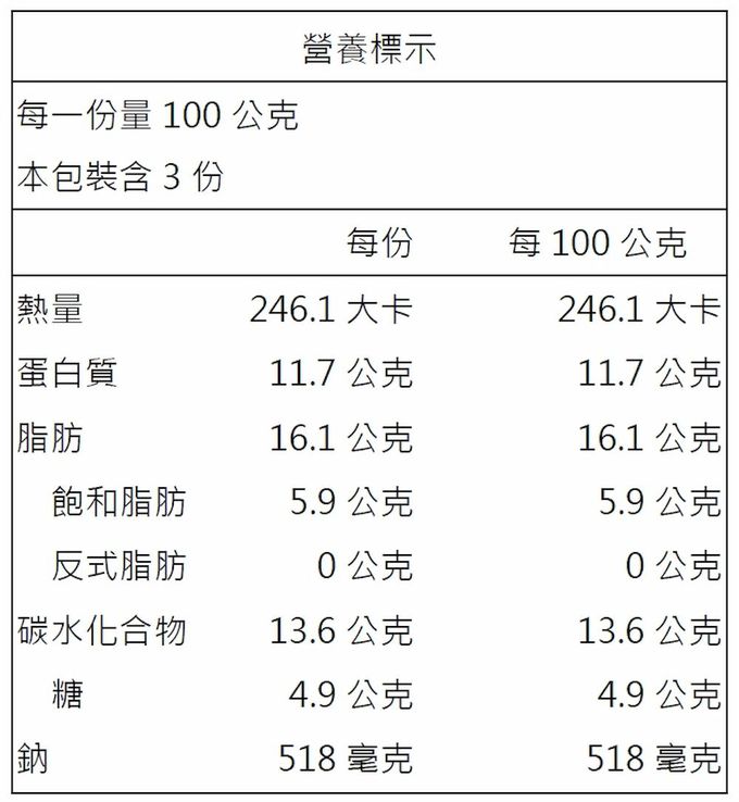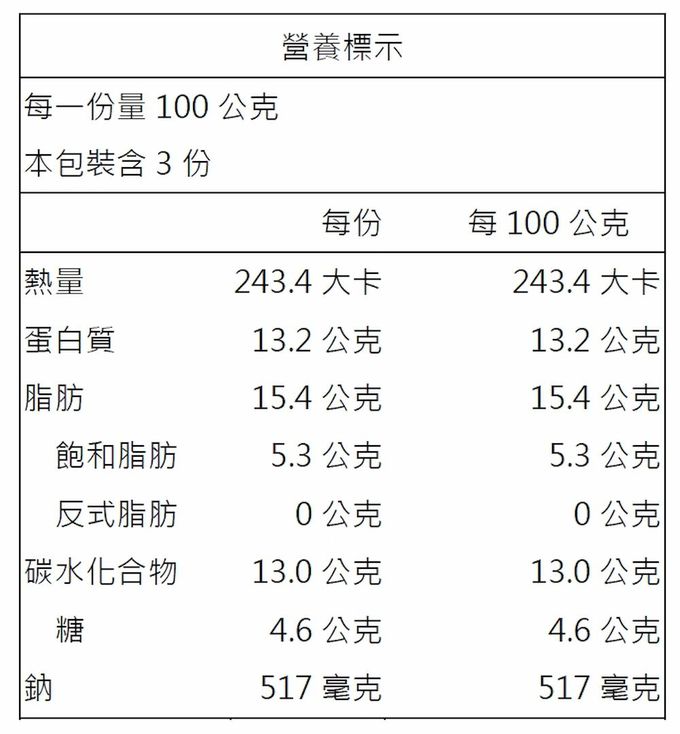 過敏原:三杯嫩雞爆漿魚丸:本產品含有含魚類、大豆、芝麻、麩質之穀物及其製品,適合對其過敏者食用。 麻婆豆腐爆漿魚丸: 本產品含有含魚類、大豆、芝麻、麩質之穀物及其製品不適合對其過敏者食用。 筍干焢肉爆漿魚丸:本產品含有含魚類,不適合其過敏體質者食用。