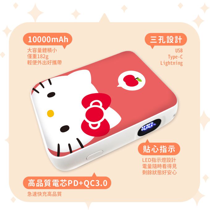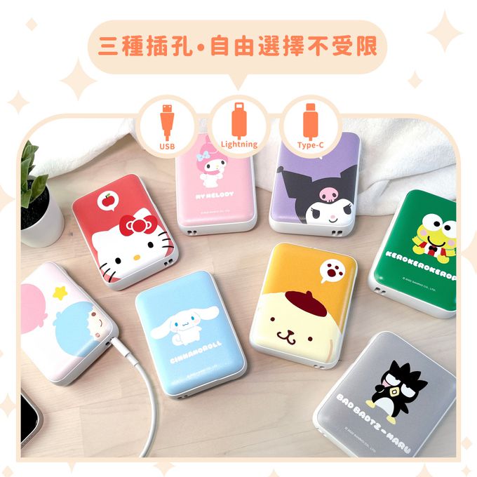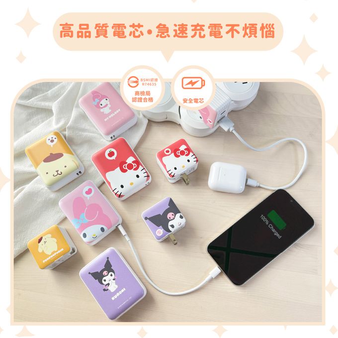 【Hong Man】三麗鷗系列⭐三麗鷗正版授權⭐️10000mAh高品質安全電芯⭐️PD+QC3.0快速補充電量不心慌⭐️採用高品質電芯製造﹐通過國家安全認證⭐️僅重182g迷你體積小巧好攜帶⭐️貼心電量指示燈設計﹐隨時查看電量剩餘狀態好安心⭐️三孔設計﹐USB/Type-C/Lightning