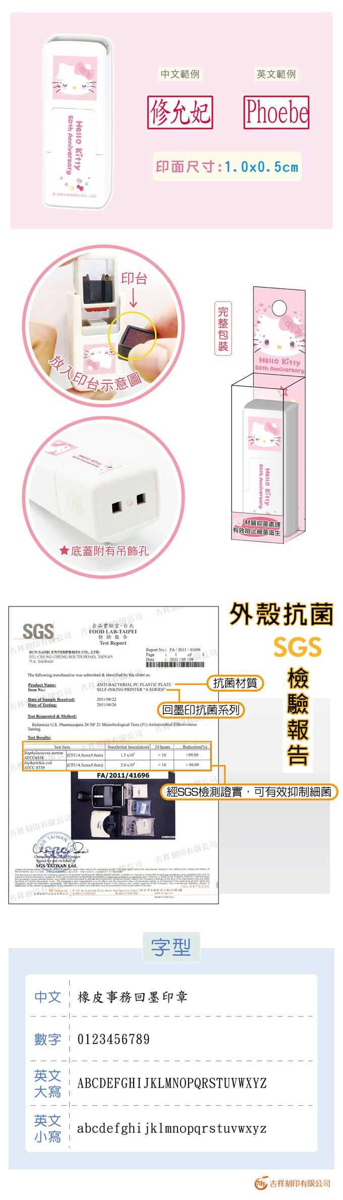 • 品名:Hello Kitty 50週年系列-夢幻美眸(2) 橡皮事務抗菌回墨印章-紅色墨-印面尺寸:0.5x1公分