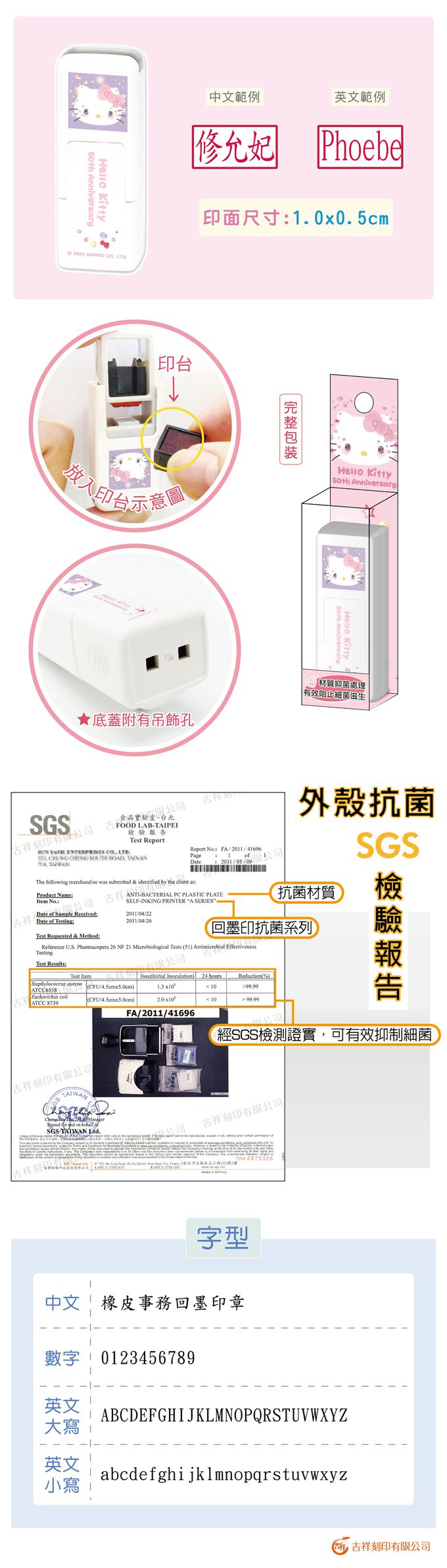 • 品名:Hello Kitty 50週年系列-夢幻美眸(3) 橡皮事務抗菌回墨印章-紅色墨-印面尺寸:0.5x1公分