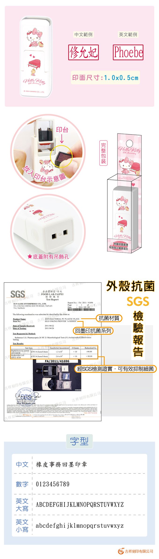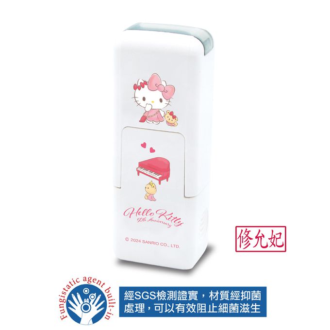 • 品名:Hello Kitty 50週年系列-美好未來(1) 橡皮事務抗菌回墨印章-紅色墨-印面尺寸:0.5x1公分