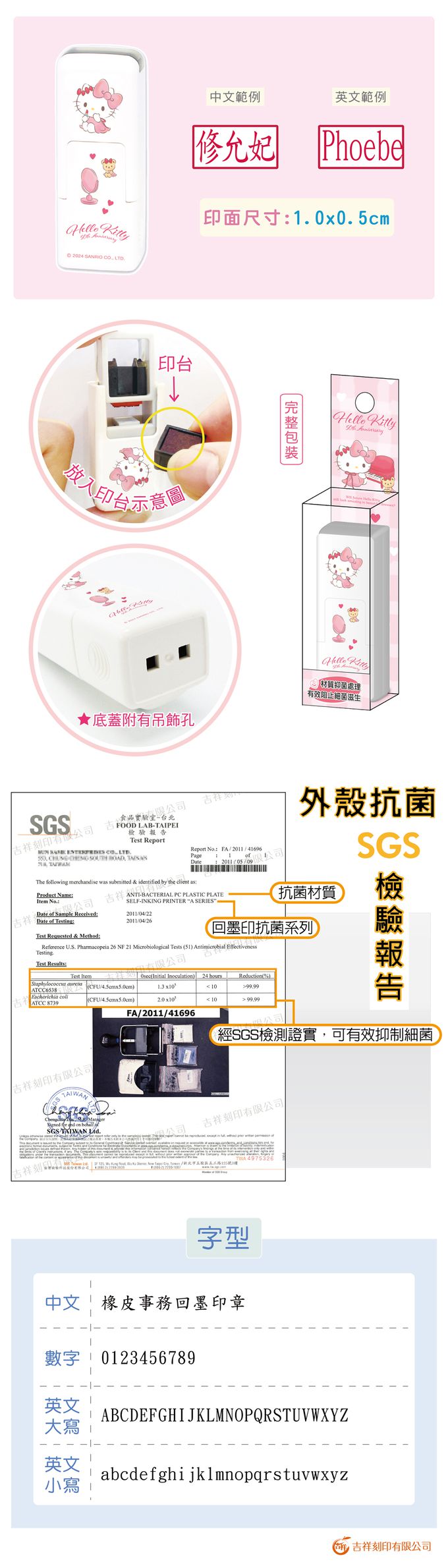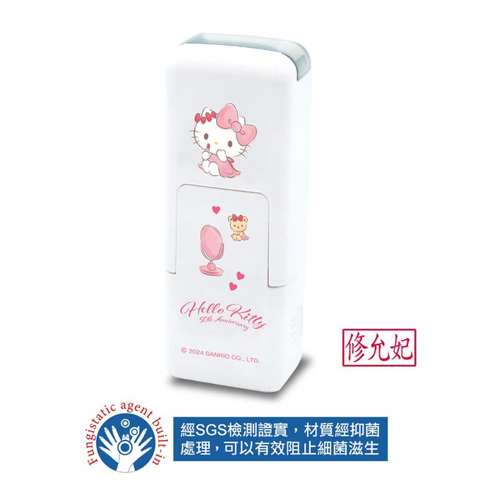 • 品名:Hello Kitty 50週年系列-美好未來(2) 橡皮事務抗菌回墨印章-紅色墨-印面尺寸:0.5x1公分