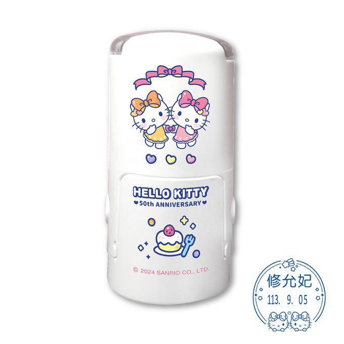 Hello Kitty 50週年系列-生日快樂(2) 日期章-民國年-藍色墨-印面尺寸:圓形直徑1.9公分