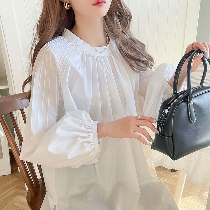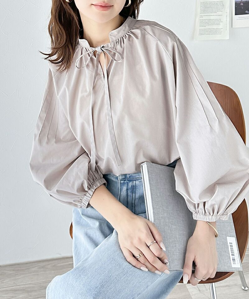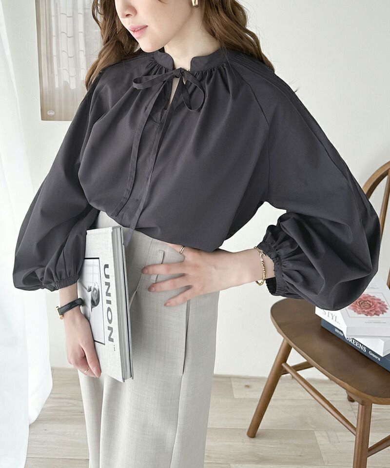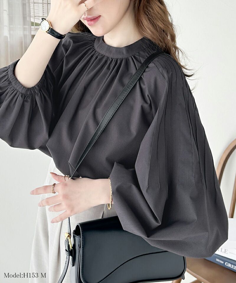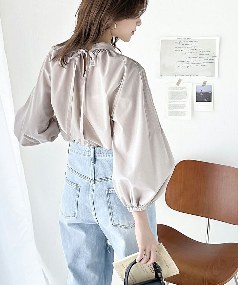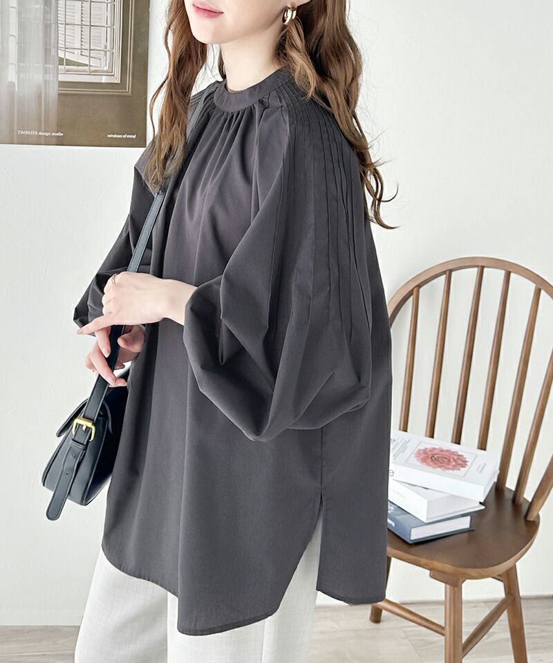 日本 Classical Elf - 前後2way典雅微光皺褶上衣-淺灰