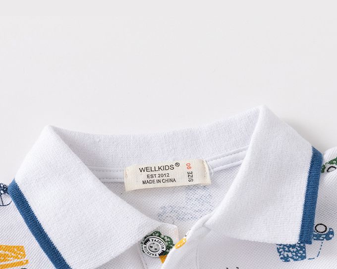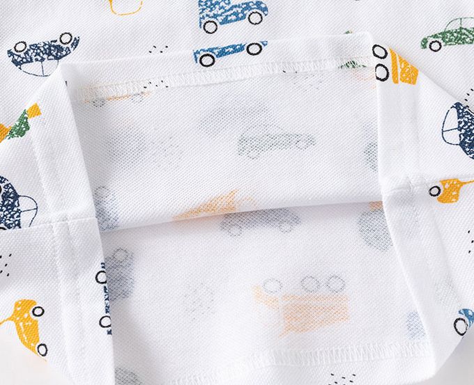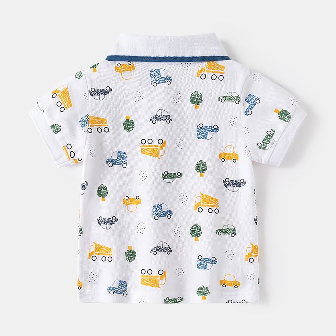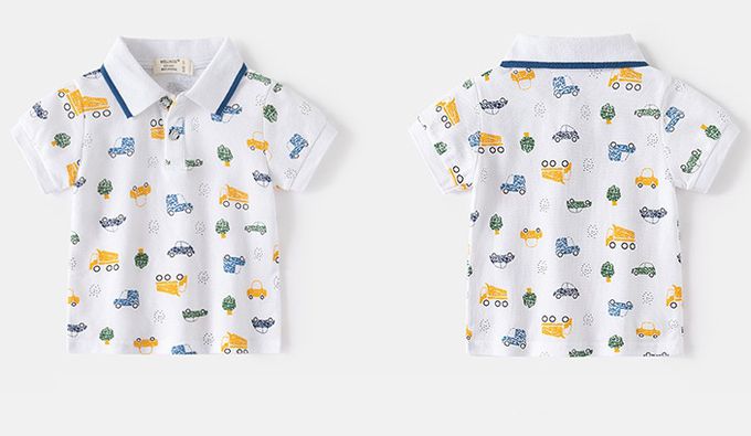 純棉休閒翻領短袖上衣-迷你車車-白色