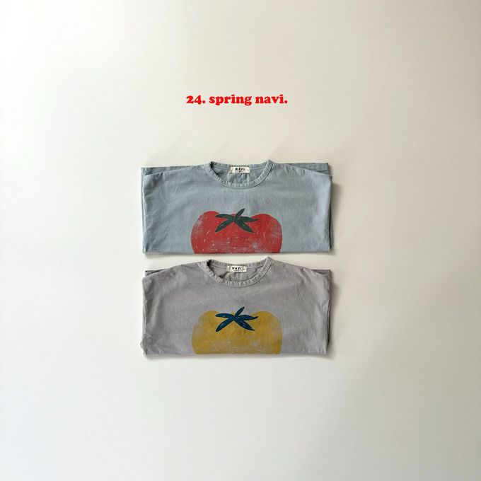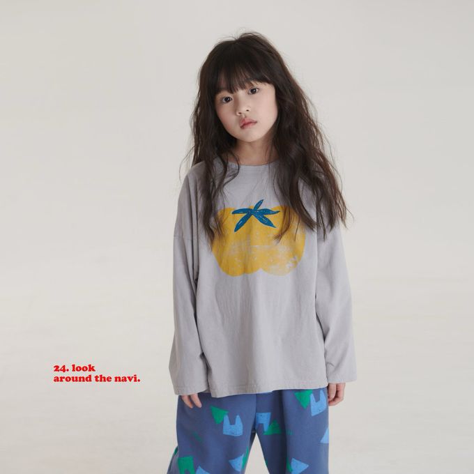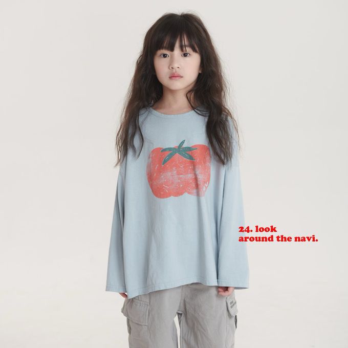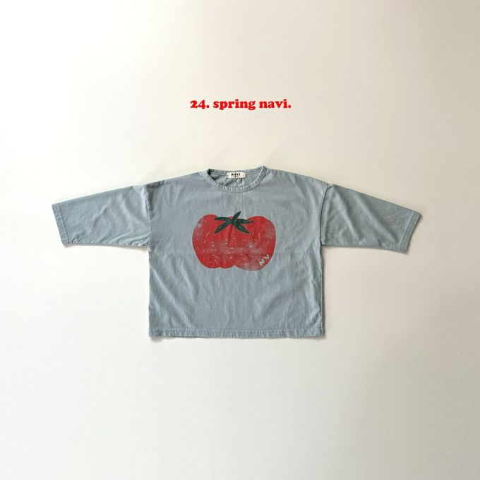 韓國 THE NAVi - 番茄圖印長袖上衣-灰