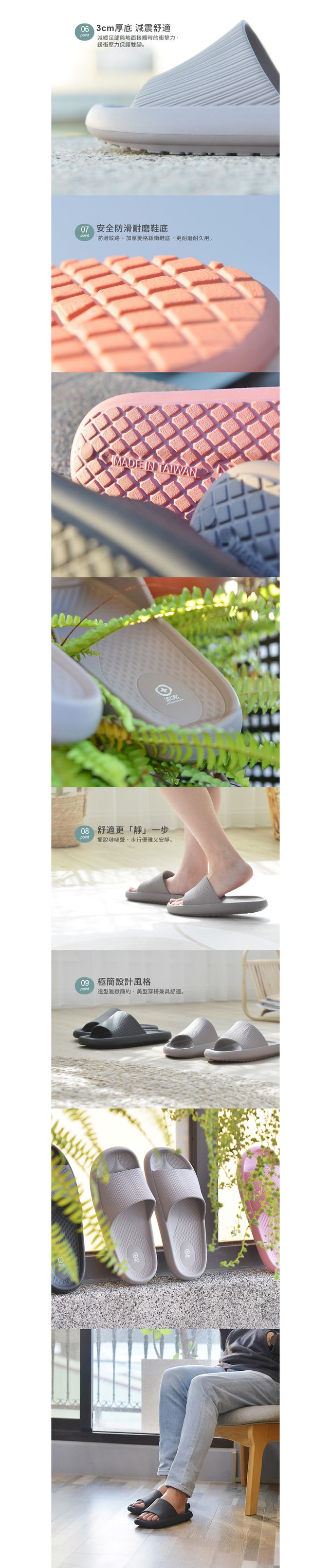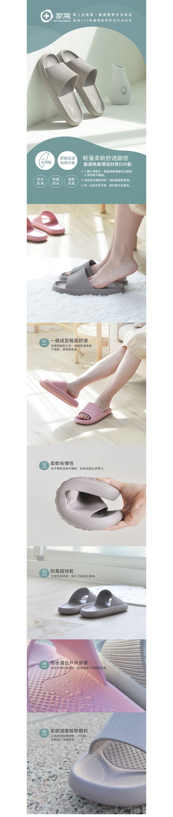 家窩 - MIT 雅漫EVA輕量釋壓厚軟底防滑拖鞋-女款-知性灰