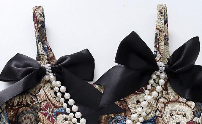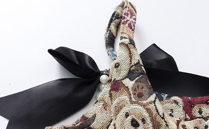 小熊提花背心洋裝配襯衫及可拆式蝴蝶結
