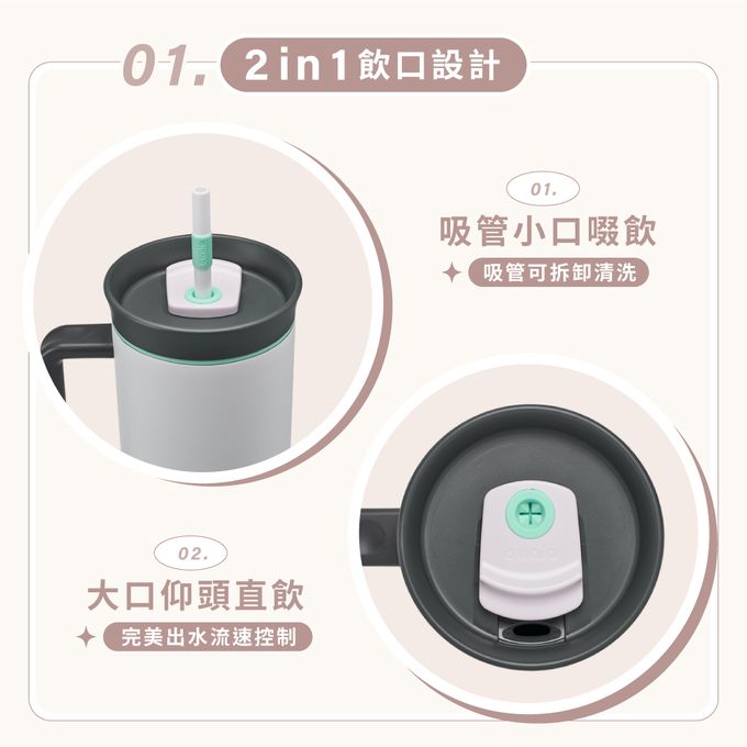 特殊吸管口設計,避免飲用水大量流出