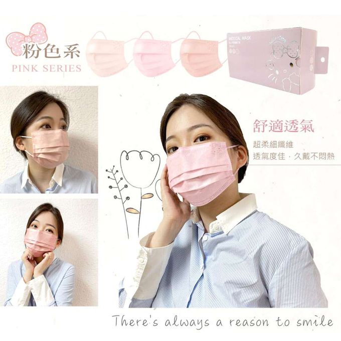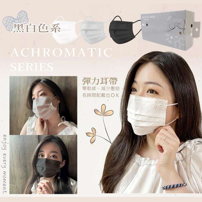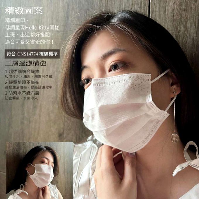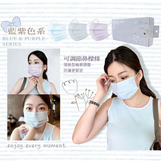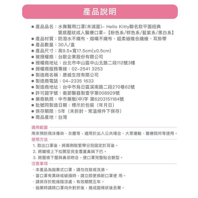 品名:Hello Kitty 聯名款平面經典質感壓紋成人醫療口罩-4色款*30片/盒*2盒-摩達客推薦