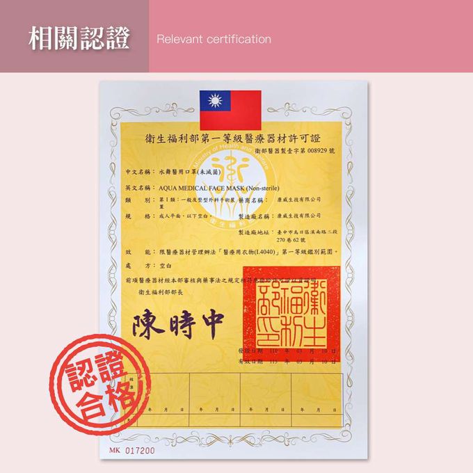 醫療器材許可證品名:水舞醫用口罩(未滅菌)