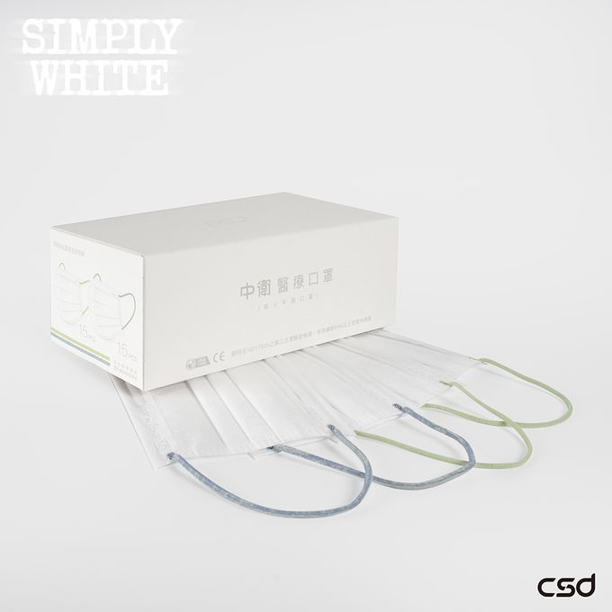 中衛醫療口罩 成人平面 Simply White SS24 彩色耳帶編織款-若芽綠、露草藍 (30片/盒)